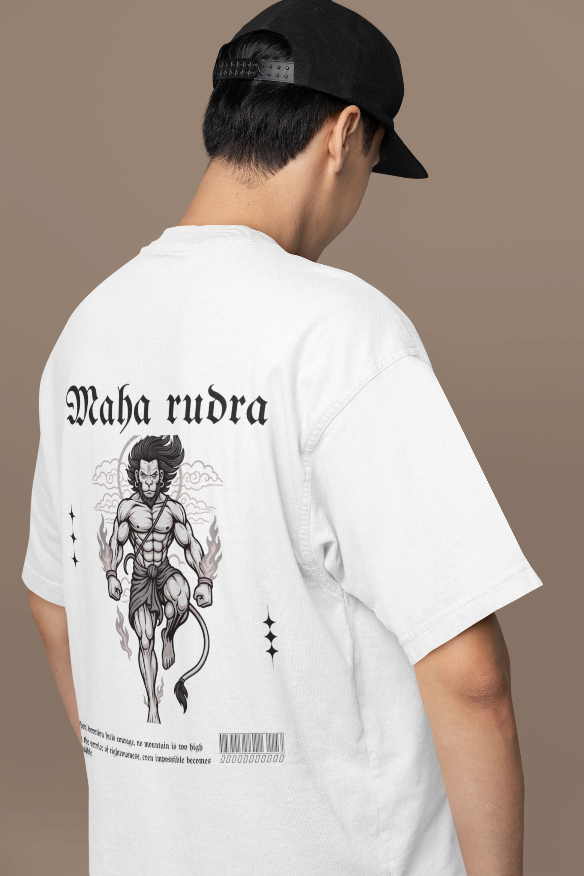 Channel the unstoppable force of devotion and power with the Maha Rudra Oversized Tee. Featuring a fierce, hyper-stylized depiction of Hanuman in his most powerful form, this artwork captures divine rage, unshakable courage, and unwavering righteousness.